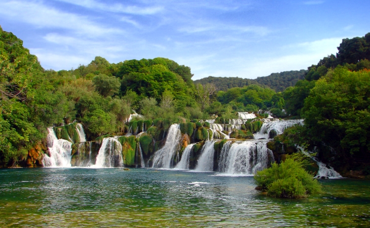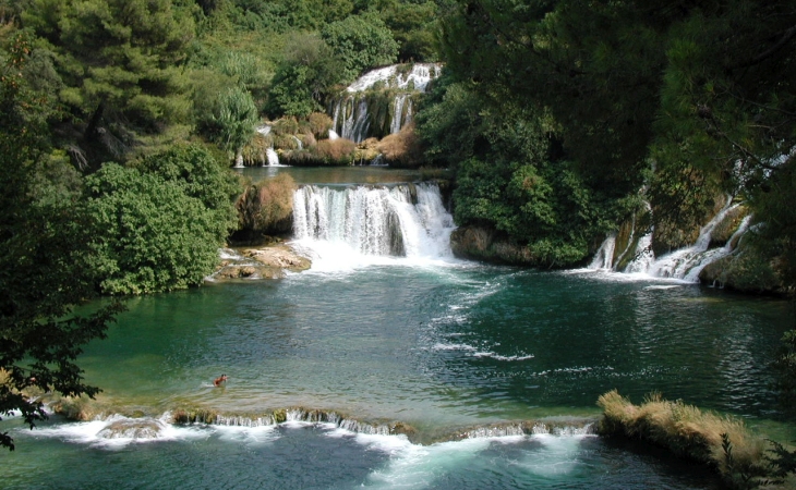 Polazak u 06.00 s autobusne stanice ispred suda u Karlovcu. Vožnja autocestom u smjeru Zadra te dalje do Šibenika odnosno NP Krke. Obilazak parka u području Skradin - Skradinski buk. NP Krka proglašen je 1985. g. i sedmi je najmlađi nacionalni park Hrvatske. Uz tok Krke obuhvaća površinu od 111 km². Zbog svog položaja odlikuje se izuzetno bogatom i raznolikom florom i faunom. Na području NP utvrđeno je 860 vrsta i podvrsta biljaka (ima više endema), a u rijeci Krki obitava 18 vrsta riba (od toga 10 endema) što park svrstava u prirodne spomenike najviše kategorije. Nakon obilaska prirodnih ljepota ovog parka odlazimo u Sokolarski centar u mjestu Dubrava pored Šibenika. Obilazak centra uz prezentaciju dresure sokolova. Slijedi kratka vožnja do Šibenika. Razgled gradskih znamenitosti (prema mogućnostima turističkog pratitelja) od kojih je svakako najznačajnija čuvena šibenska katedrala. Slobodno vrijeme za odmor i šetnju; odlazak na jednu od plaža, kupanje, sunčanje, ... Vožnja prema Karlovcu. Dolazak kući u večernjim satima.